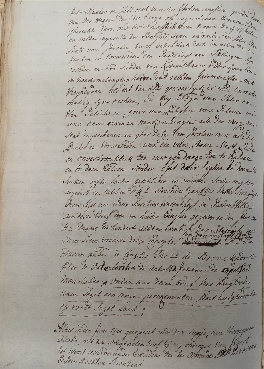 dem Jahre 1744, die in einem Urkundenbuch der Stadt Straelen zu